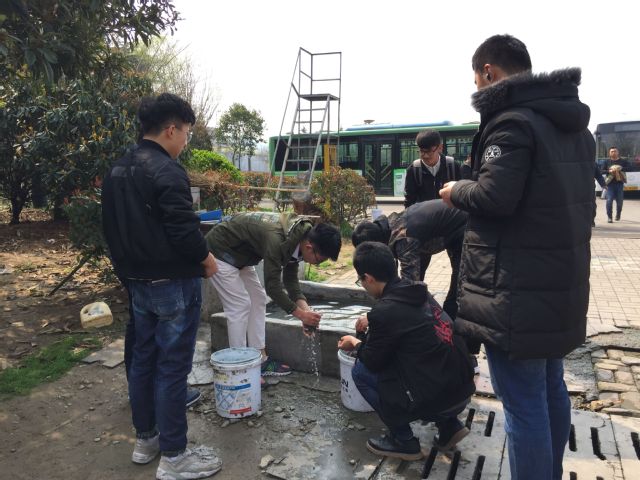 下午1点30分,十七名志愿者在北门集合。集合完毕后,带队人刘伟强分发抹布给各名志愿者。志愿者先将抹布用水浸泡洗净,之后开始清洁自行车。到达第一个公共自行车站点后,志愿者们便迅速地投入到了工作当中,纷纷拿起手中的抹布,弯下腰擦洗车身。同时,志愿者们也不忘将自行车刷卡器也认真清理了一遍。当清洁工作完成后,再前往下一个公共自行车站点。在带队人刘伟强的带领下,十七名志愿者们由三环南路向珠山东路上的云龙湖风景区进发。到达自行车站点时,志愿者们十分默契地穿插在一排整齐地自行车里,认真仔细地擦洗自行车。在到达云龙湖风景区后,带队人带领大家来到公共厕所清洗抹布,志愿者们井然有序地排队等待清洗抹布。大约两个小时后,公共自行车清洁活动顺利结束。