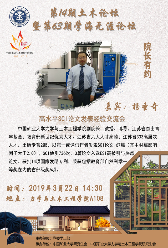 研究生会有幸邀请到了博士生导师杨圣奇副院长为我们答疑解惑。报告会采取交流的形式解答同学的疑惑,提供相关的学术指导。他发表SCI论文67篇的经历定能给予我们宝贵的经验,没有经验,任何新的东西都不能深知。如果你想在学术研究中更进一步,把握住这次机会。