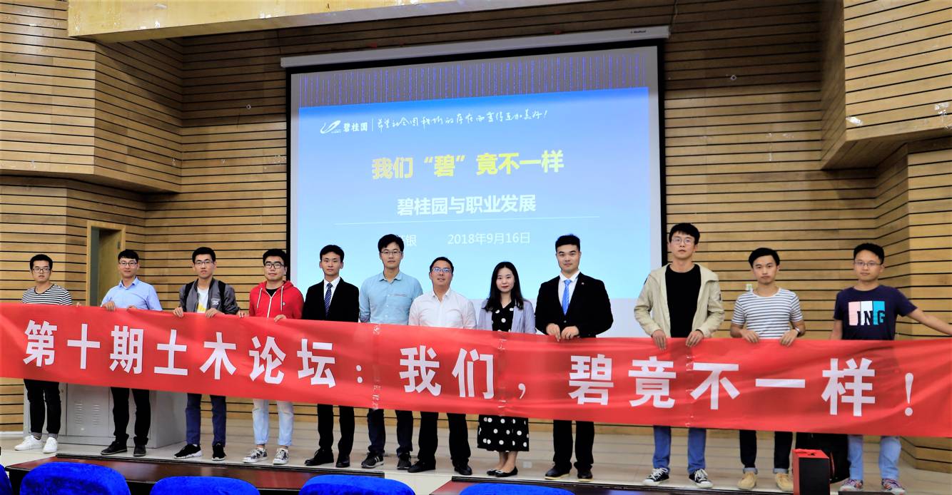 研究生会举办的题为“我们,碧竟不一样”土木论坛。碧桂园苏北片区人力总监,学院研究生会全体成员,以及来自全院各专业的近200名同学到场聆听了讲座。