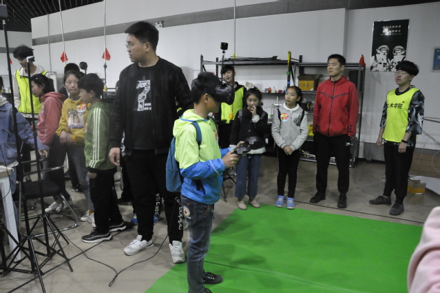 贾汪区来访团队首先抵达深部岩土力学与地下工程国家重点实验室。在实验室内带队老师用通俗易懂的语言向小朋友们讲解了实验室内各种器械的原理及使用方法。面对大型的机器,小朋友们都展示出强烈的好奇,认真聆听,不时触摸并拍照留念。接着,参观者抵达大创基地。在大创基地内部存有各种矿大学生的科创成果,其中包括无人机、无土栽培、结构模型等。其中最吸引小朋友目光的是体感仪,“带上这个仪器我仿佛置身于另一个世界,在另一个世界里行走,真是太神奇了!”鹿永乐同学感叹道。在大创基地内负责同学还向小朋友展示了无人机的操纵和各种模型成果,开拓了小朋友们的眼界。