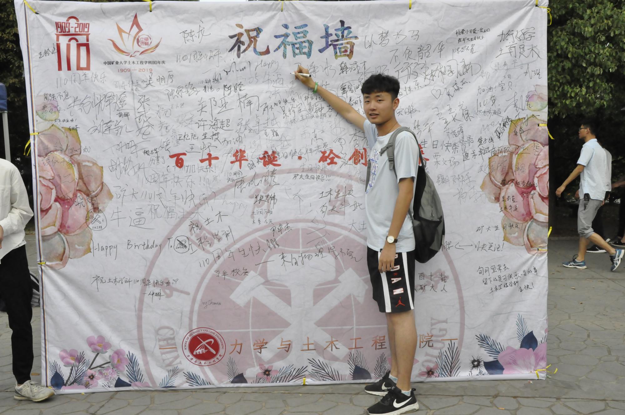一位在祝福墙上写下祝福的同学表示:“在签名送祝福的过程中,我提前感受到了学校、土木工程学科110周年庆典的欢乐气氛,在此祝福学校、土木工程学科能越办越好。”