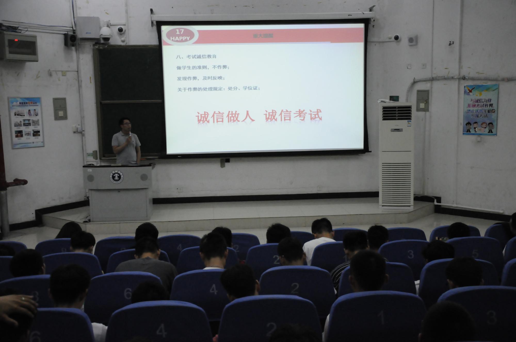 大会伊始,同学们在各班班长的组织下准时到达开会地点并有序就座。首先,李亮老师对本学期的情况进行了总结,指出了年级在本学年期所取得的成绩和存在的不足。临近期末,考试较多,李亮老师提醒大家要诚信做人,诚信考试。随后,他就选课、假期安全、认识实习、宿舍安全卫生、大三规划等问题进行讲解和提醒。他还希望同学们可以在假期内调整状态,多读书,提升自己的文学素养,并对自己以后的学习和生活做好规划。
