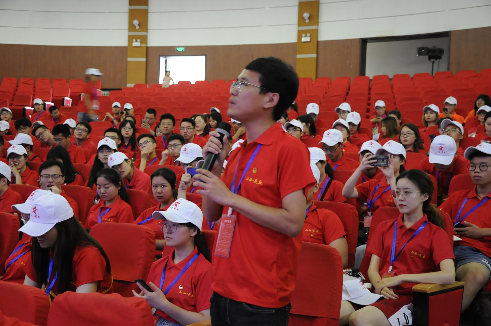 8月6日,实践团两百余名成员齐聚灵丘一中进行开营仪式。在灵丘一中教学楼前当地政府领导与两百余名实践团成员进行合影留念。参加本次开营仪式的领导有团中央驻灵丘扶贫工作队严石队长、共青团灵丘县委员会鲁二峰书记和中央团校的老师。在开营仪式中严石队长就灵丘县的脱贫历程做了简短的汇报讲话,并对灵丘县接下来的发展方向做了简单讲解。我校计算机学院李艺帆同学作为学生代表发言,他提出“我们满怀希冀来到灵丘,希望可以在这里留下我们认真实践的足迹,秉承十九大把人民对于美好生活的向往作为奋斗目标的精神指引,努力奋斗。”随后灵丘县扶贫办李主任就实践团成员提出的五个问题进行解答。我校土木学院指导老师游洋分享了自己与灵丘深厚的渊源,游洋老师曾作为研究生支教团一员来到灵丘进行支教,随后连续四年回到灵丘进行社会调研,他提问道:“灵丘县对于人才的引进问题有哪些解决措施?”李主任也一一做了解答。灵丘作为矿大持续20年定点扶贫支教点,一代代矿大学子将持续奔赴这里,接力开展支教工作,助力国家级贫困县教育工作顺利开展。接下来实践团来到灵丘博物馆、赵武灵王墓进行进一步的学习、调研工作。