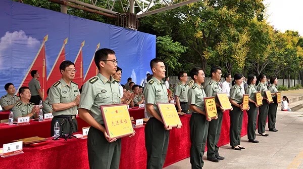 2019级新生军训总结表彰大会上,学院荣获“2019级学生军事技能训练先进单位”荣誉称号,辅导员游洋以及4个班级、50名同学同时受到表彰。