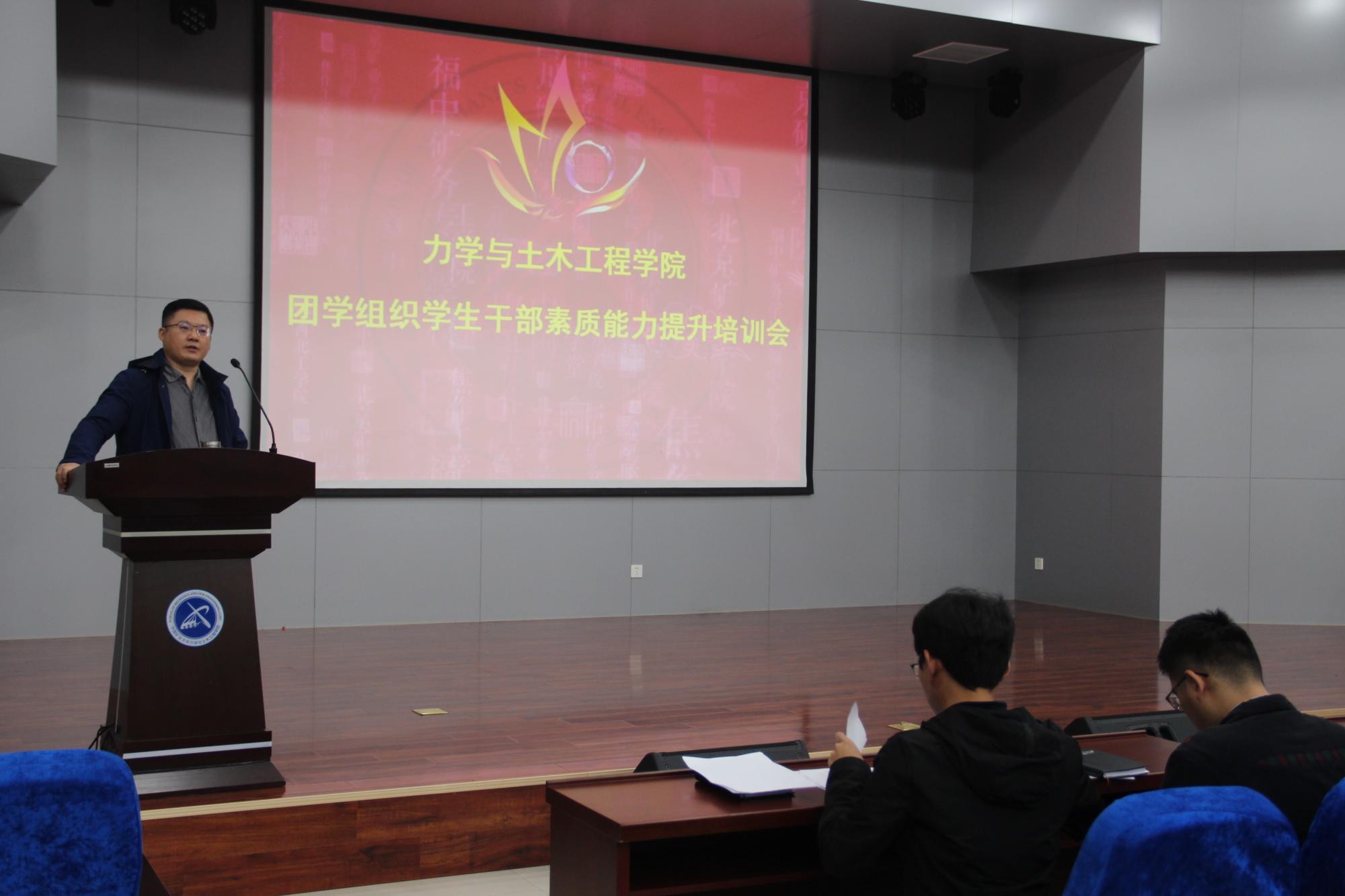 为统一各学生组织学生干部思想,推进学院团学组织改革措施的贯彻落实,10月12日,学院于A108报告厅召开团学组织学生干部素质能力提升培训会。学院党委副书记张庆春应邀担任培训主讲人,学院团委书记游洋、各团学组织指导老师及全体学生干部参加了本次会议。