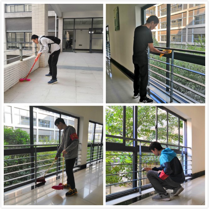 上午8点半,志愿者们准时到达博学2号楼集合。在明确了活动目标及注意事项后,上午9点,志愿者以小组为单位正式开始了清扫活动。有的拿起抹布清理走廊栏杆上的灰尘,有的把座位和桌面遗留的垃圾清理干净,有的将黑板上残留的粉笔灰尘擦拭,有的用扫帚扫去A、B区之间连廊上的枝枝叶叶。当清扫到有同学正在学习的教室时,志愿者们自觉减小打扫时发出的声音。经过志愿者们2个多小时的认真打扫,博学楼焕然一新,教学楼管理员也对同学们打扫时认真的态度给出好评。