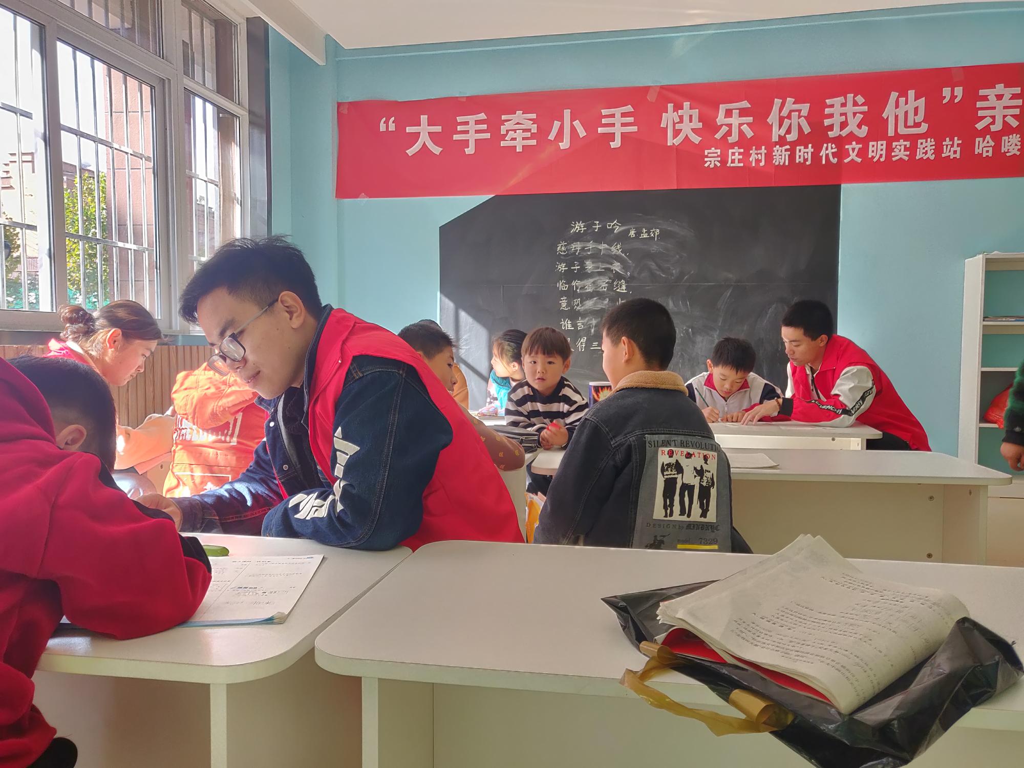 本次社区服务活动志愿者们分为两个小组,一组前往宗庄村委会,一组前往大李庄村,为孩子们辅导作业、带孩子们做游戏。前往宗庄村委会的志愿者为孩子们讲解错题、难题,纠正孩子们的学习习惯,为孩子们提供帮助。此外志愿者们还为孩子们带来了课外知识小讲堂:以《那年那兔那些事》动画片的片段为载体,向小朋友们讲述了从辛亥革命到国共第一次合作失败的一些历史故事。结束后,一名小朋友表示:“谢谢哥哥姐姐帮我检查作业,解决难题,希望下次你们能继续给我们讲之后的历史故事。”
