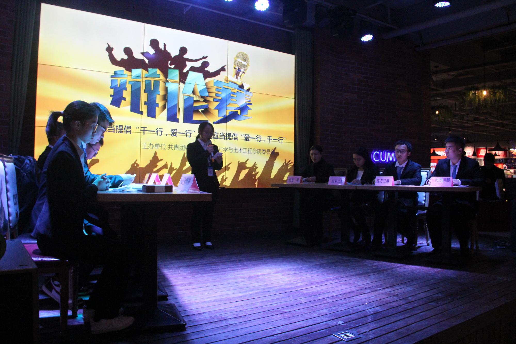 经过前期的激烈角逐,力学19-3班和土木19-14班最终在参赛队伍中脱颖而出。12月6日晚,力学19-3班与土木19-14班于音乐餐厅进行最后的对决。决赛上,双方就“当今时代,是否应当提倡‘干一行,爱一行’”的辩题展开激烈的辩论。在主持人讲解完比赛规则后,土木学院第三届辩论赛决赛正式开始。