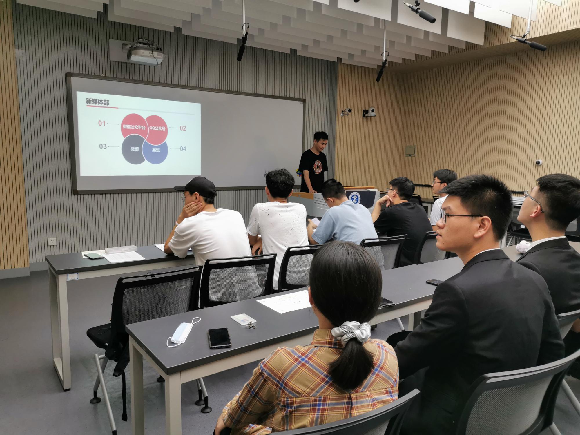 7月16日,学院大学生传媒中心于学院楼B201举办2020-2021学年度大学生传媒中心换届答辩会。大学生传媒中心指导老师路铭、主任郑新宇以及各部门前部长参加了本次换届答辩并担任评委。