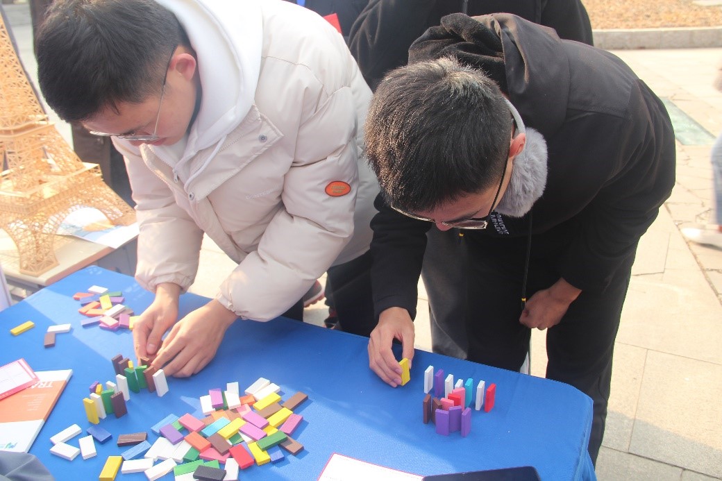 展区作为14个科技展区之一,为现场参观者提供了多米诺骨牌小游戏。参观者可自行设计制作模型。另外,继母a片