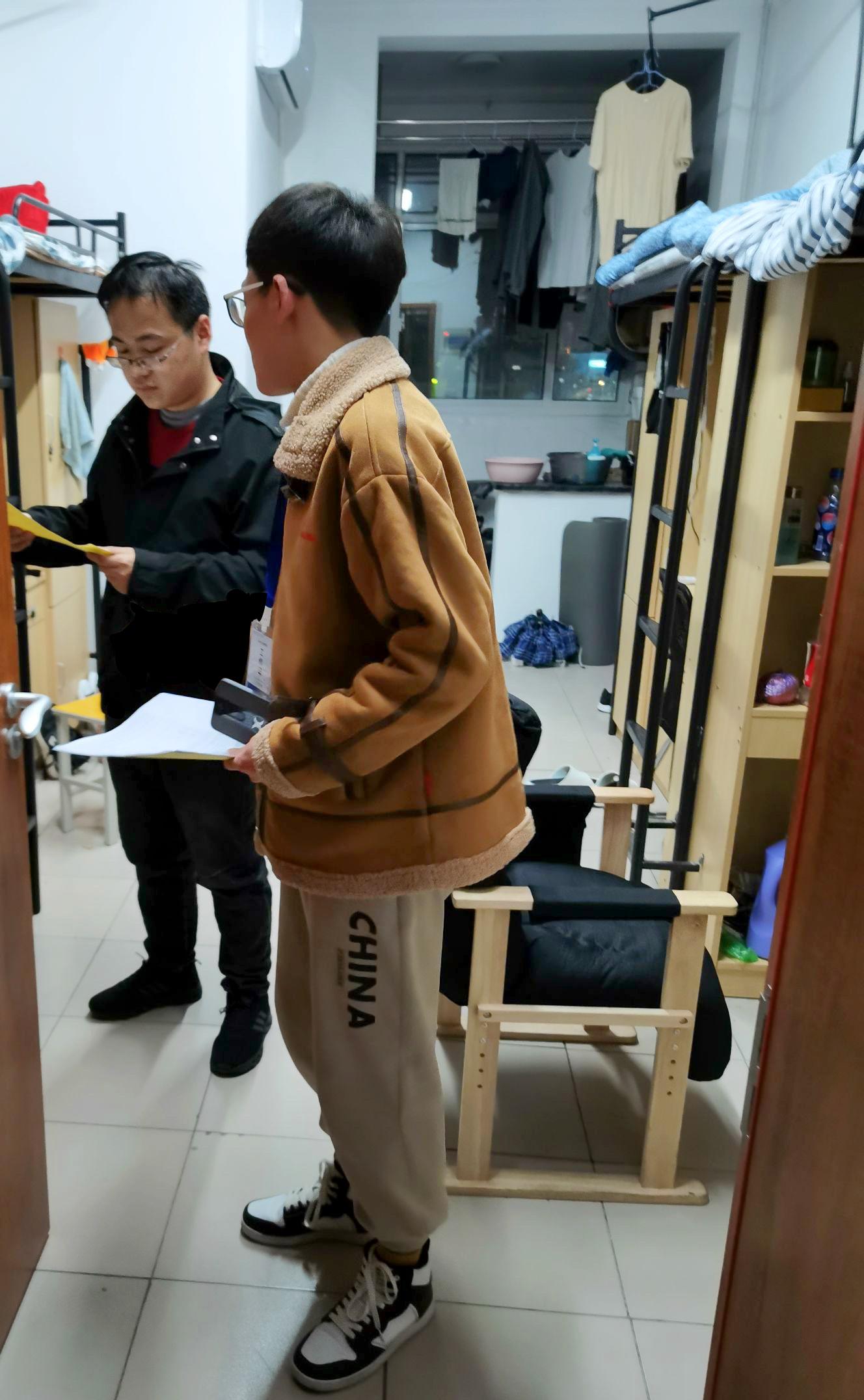 研会生活部部长刘潮汐带领研究生查寝工作小组开展了新学期首次宿舍安全卫生检查工作。本次检查区域包括南湖校区兰1、兰2、兰3、梅1、梅2、梅3、杏3楼和文昌校区学4、学5、学6、学7、西26和学34楼,查寝工作小组由继母a片