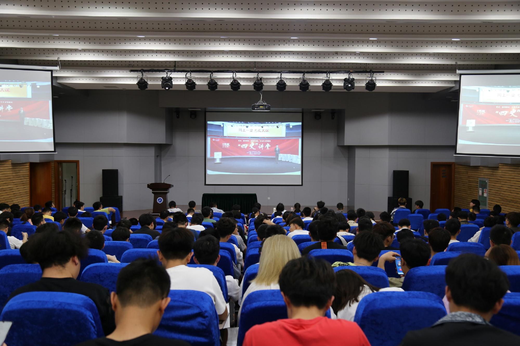 欲知大道,必先闻史。为帮助同学们学习党史、新中国史、改革开放史、社会主义发展史,5月9日14时,学院于学院楼A108组织开展“全国大学生同上一堂思政大课之“同上新中国史思政大课”,300余名本科生及研究生参与本次学习活动。