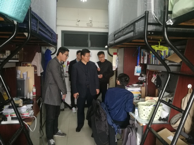 为贯彻落实学校新学期安全工作要求,营造安全、整洁的宿舍环境,3月28日,学院党委副书记张庆春带领各年级辅导员组成宿舍安全卫生检查组,对本科生及研究生宿舍进行检查。