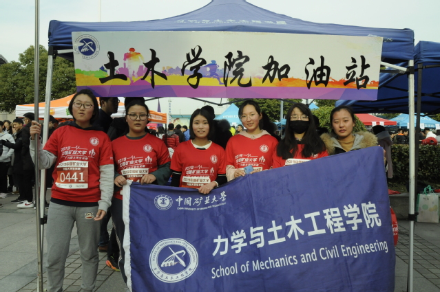 本次比赛有竞赛组与普及组(方队)两种形式。下午2点30分,在有关领导发言后,竞赛组的女子组首当其冲,开始了比赛。2点50分,竞赛组的男子组也开始了比赛;3点整,各组织的普及组也开始了比赛。值得关注的是,女子竞赛组前3名身体素质良好,与其他参赛选手拉开了较长的距离,但她们仍旧没有松懈,而是相互比拼。相比之下,男子竞赛组的比赛节奏快了许多,仅用了女子组一半左右的时间便完成了比赛。普及组虽然不计名词,但是每个组织的方队仍旧有着自己的节奏和自己的口号,以鼓舞士气。普及组的各个组织成员都佩戴了本院或本组织统一的标记或图案,分队鲜明有序,充分展示矿大学子团结进取的精神。