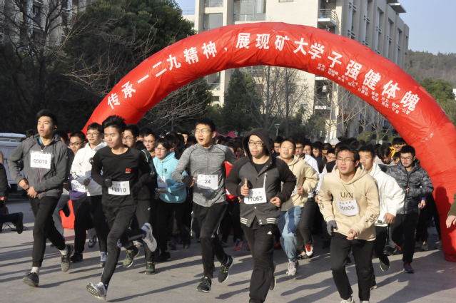 1935年数千学生积极响应党的号召,于12月9日在中国共产党的领导下举行了抗日救国示威游行,反抗日本帝国主义。为纪念“12·9”运动83周年,12月9日学校举办了“12·9”长跑运动。早上9点,通过简短的比赛介绍等流程后比赛正式开始。据悉,本次活动土木学院共有46人报名参加,长跑分为男生和女生两条路线,分别为桃苑广场-学苑北路-次干道-行建东路-行健西路-桃苑广场、桃苑广场-行建东路-行健西路-桃苑广场。