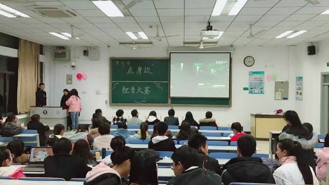 晚7时,参赛的80组同学分别到达博学楼4号楼B101和C102进行签到,并开始为比赛做准备,比赛随后正式开始。在“节目配音”环节中,参赛选手根据主办方提供的各种视频进行配音,展现出了自我的不同风格,给观众和评委带来不一样的听觉享受。随后,进行初赛的第二个环节—音质比拼。选手们现场抽取文段或者绕口令进行朗读,评委根据参赛队员的普通话标准程度、声音特色以及流利程度进行打分。同学们积极展现个人风格,比赛会场欢笑不断。最后,评委们根据各组选手的表现情况进行打分,并商讨决定晋级决赛的参赛队伍。