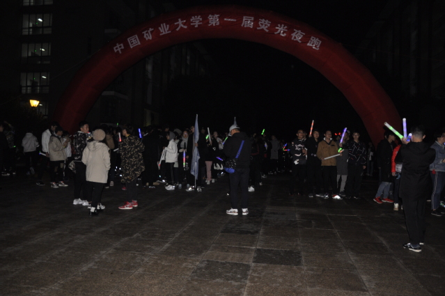 学生会举办了第一届“三走”主题活动之荧光夜跑,广大师生积极参与了本次活动,充分展示了“荧在矿大,闪亮青春”的主题。