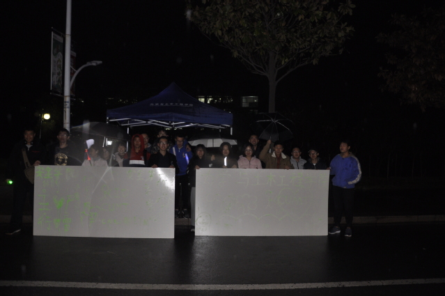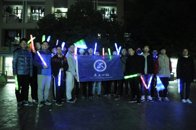 下午5点30分,天空上飘起了毛毛细雨,但活动并没有因此中止,签到处已经搭好了帐篷,准备工作已经完成。活动参赛者也准时到达签到处签到,并领取荧光棒,做夜跑前的准备。为保障活动的有序进行,参与者分为多个批次准备起跑,跑步路线是:图书馆(起点)—三食堂—东门—北门—图书馆(终点)。在夜跑过程中,参赛者须在本学院设立的站点处完成kt板的绘制。参赛者在完成热身活动后在毛毛细雨中出发,同学们整齐划一的站在跑道上,随着荧光棒的挥动开始了夜跑。参赛者有个人和团体两种形式,团体主要以各学院学生会和各班级团支部的形式参与,同时为了保证同学夜跑时的安全,志愿者在沿路为参赛者服务。