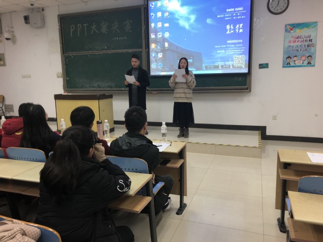 为倡导青春正能量,并展现大学生精神新风貌,11月21日晚七点,学院大学生心理自助中心于博一A101举办“心约”PPT决赛,本次决赛邀请到17级兼职辅导员舒畅老师、16级兼职辅导员冯小雨老师及各学院心理自助中心负责人作为比赛评委。参赛同学以“离人愁”、“心心相印”、“风雨无阻,负重前行”为主题,结合自己制作的PPT,进行精彩的演讲。