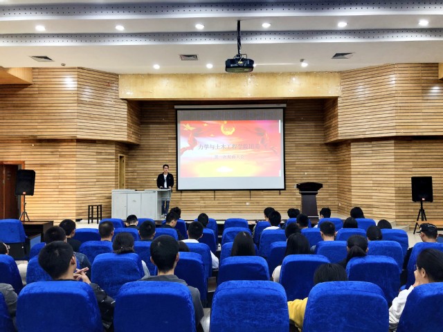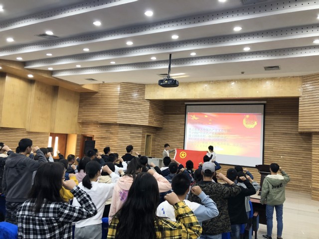 上午9点,大会正式开始。首先,韩飞虎同学介绍了院团委的主要工作并强调了各部门之间要相互协作共同建设团委大家庭。之后,分别是各部长总结一年以来的学习经验和心得,各部门干事自我介绍以及各部门代表发言。最后在韩飞虎同学的带领下,同学们重温入团仪式,在团旗下宣誓,不忘初心砥砺前行。
