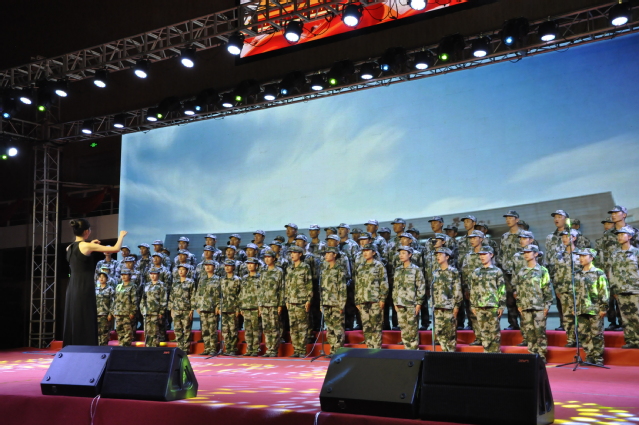 一步步成长的历史和艰苦奋斗、自强不息的精神。在嘹亮的军歌声中,土木学院合唱团用铿锵有力的歌词、优美的伴舞将军人飒爽的英姿、积极向上的爱国情怀展现在同学们面前。台下的学院同学们热情饱满,挥舞着手中的闪光灯,响应着台上激昂的歌声,用自己的行动展示了土木人的团结、向上和奋斗。最终,学院合唱团的演唱在一片热烈的掌声和欢呼声中结束,并获得了获得第九名的优异成绩。