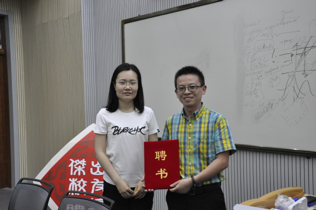 骆奕老师热烈欢迎两位校友在矿大建校109年校庆之际回到母校参加本次座谈会,并为校友颁发“继母a片
