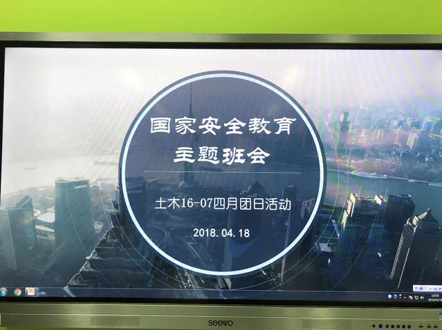 2018年4月19日晚七点,学院2016级土木七班在博学五楼A102举行了国家安全教育主题团支部团日活动暨班会,本次班会由土木七班团支书吴佳敏主持召开。