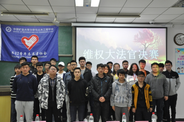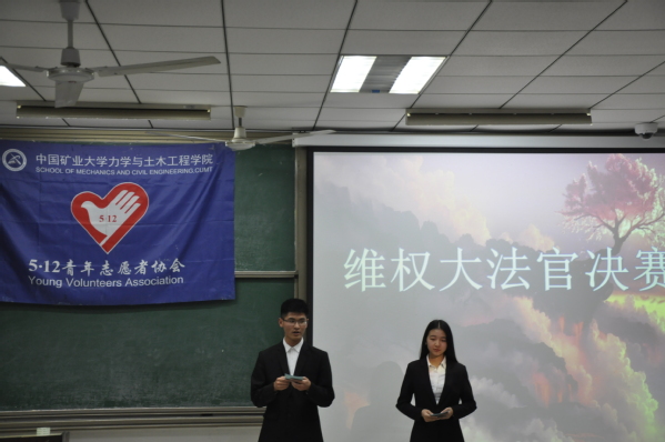 3月24日晚七点,由学院5..12青年志愿者协会主办的维权大法官决赛于博一A201正式举行。学院5.12青年志愿者协会主席杨磊、其余各学院青年志愿者协会代表以及参赛成员出席参加了此次活动。