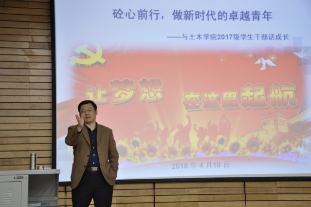 4月10日,学院于学院楼A108举行 “学生干部-卓越青年”专题培训交流会。本次会议由学院党委副书记张庆春主持,2017级辅导员李亮老师和兼职辅导员腾毅老师出席了此次会议,2017级全体学生干部共同参加了本次培训交流会。