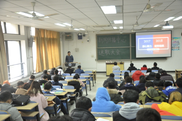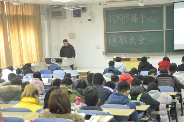 1月17日下午,学院大学生新闻传播中心2017-2018年述职大会在教4A101隆重举行。新传指导老师李亮老师和吴双老师出席了本次大会,新传全体成员参加了本次大会。新传主任王立鹏担任本次大会的主持人。