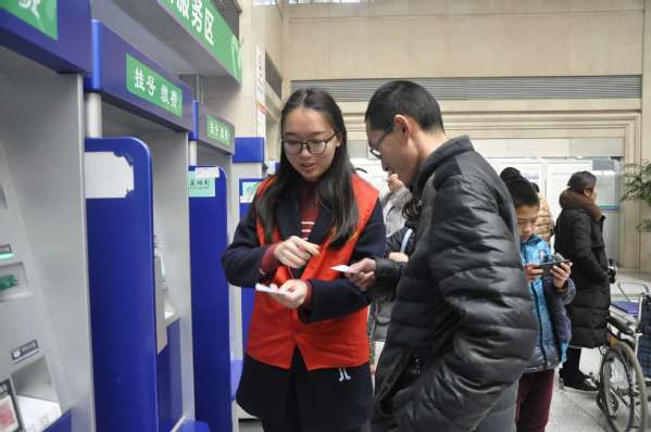 下午两点,参加志愿活动的志愿者们准时到达市四院,在完成签到、换志愿服等一系列准备后开始导医。首先,医院工作人员向参加导医活动的志愿者们详细介绍了自助挂号缴费机器的使用方法、强调了导医过程中的注意事项并将志愿者均匀分配到自助机器前。在导医过程中,每个志愿者都热心地询问就医者所需要的服务,耐心地告诉就医者如何使用机器办理就诊卡,挂号,缴费,打印缴费单……当看到有想要挂号看病的老人或带着孩子的母亲时,志愿者们会积极主动地上前询问他们想要挂号的科室并完成挂号。如果碰到由于机器故障而给就医者带来不便或者就医者有疑问的情况,志愿者们会咨询前台工作人员,帮助就医者及时解决问题。最后,在帮助别人的同时,每个志愿者也学到了许多关于使用医院机器以及应对突发情况的知识。三个小时短暂的导医活动很快结束了,志愿者们怀揣着帮助与服务别人后的开心与满足离开了市四院。