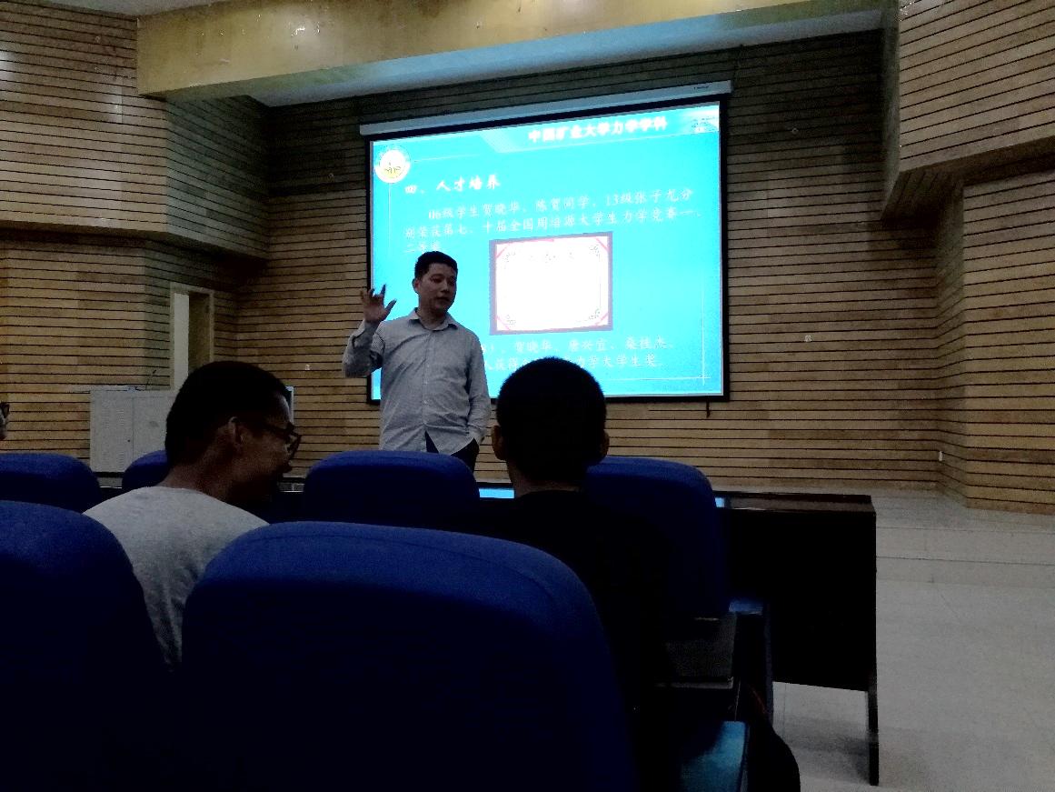 参加力学竞赛近十几年的参赛及获奖情况。最后他对不同高校力学的研究方向展开较为深入地阐述,细心地为我们2017级力学类学生4年的大学生活进行了详细的规划,让同学们对力学的学习有了更深的认识。